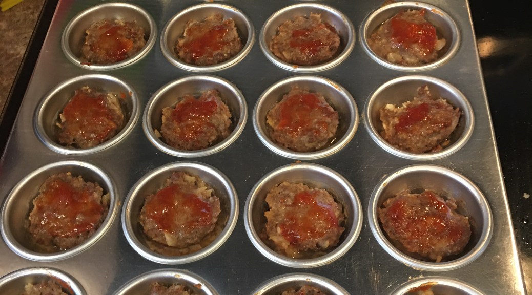 The recipe is Asian Mini Meatloafs. You make it in a muffin pan. It made a total of twenty-four mini loaves. Enough to last the hubby through his work shifts.