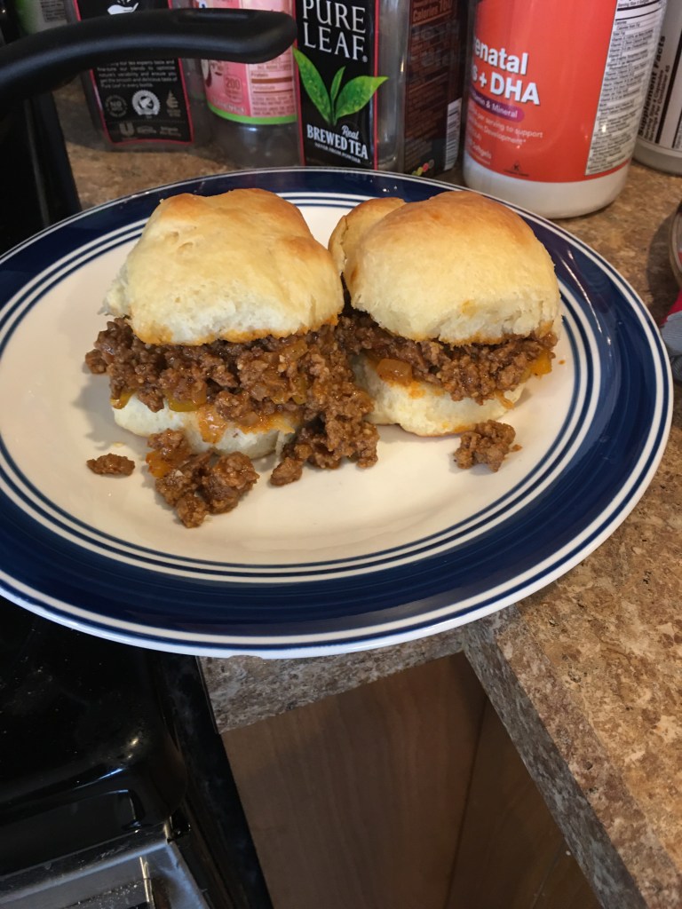 Well I felt super ambitious the other night. I decided to make the Sloppy Joe’s recipe from the, The Frontier Cookbook. I already have a recipe that I’ve always used, my sister found it. But I decided to branch out and try a new one…I also decided to make those “fluffy rolls” again!