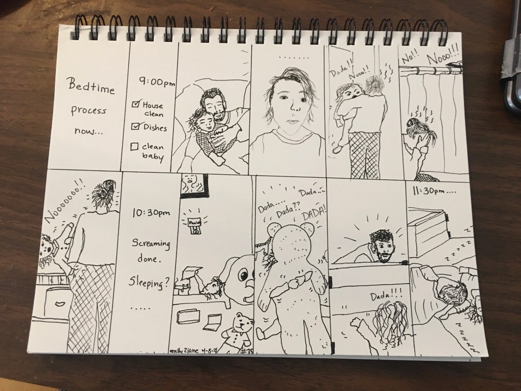 I need to change my schedule with her. I need to shower her around 7:30-8:00 and then if she falls asleep with daddy on the couch I can just carry her upstairs and it’s bedtime.