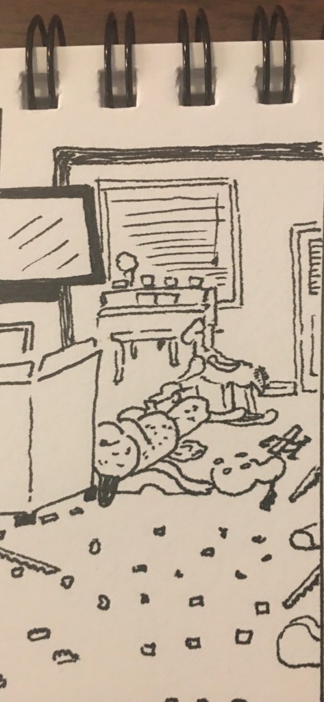 The living room looks worse than it did last night….so we will be cleaning again! All parents understand the legos…Whoever invented them did not think about the pain caused when stepping on them. If they had…