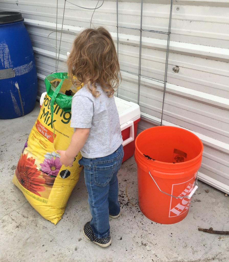 Elizabeth was helping me fill buckets. She will probably be bored soon.