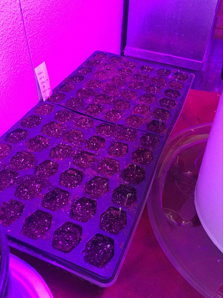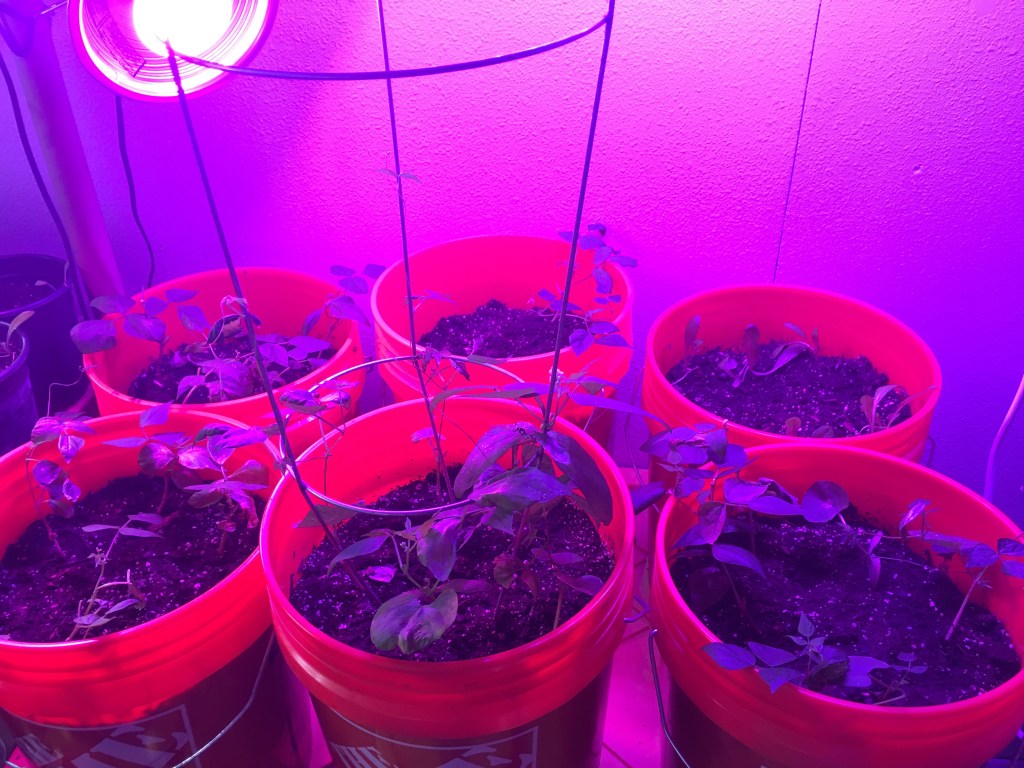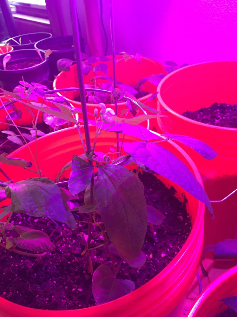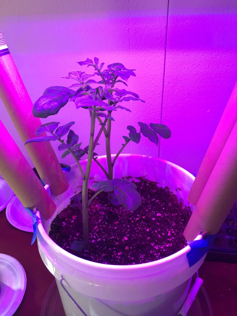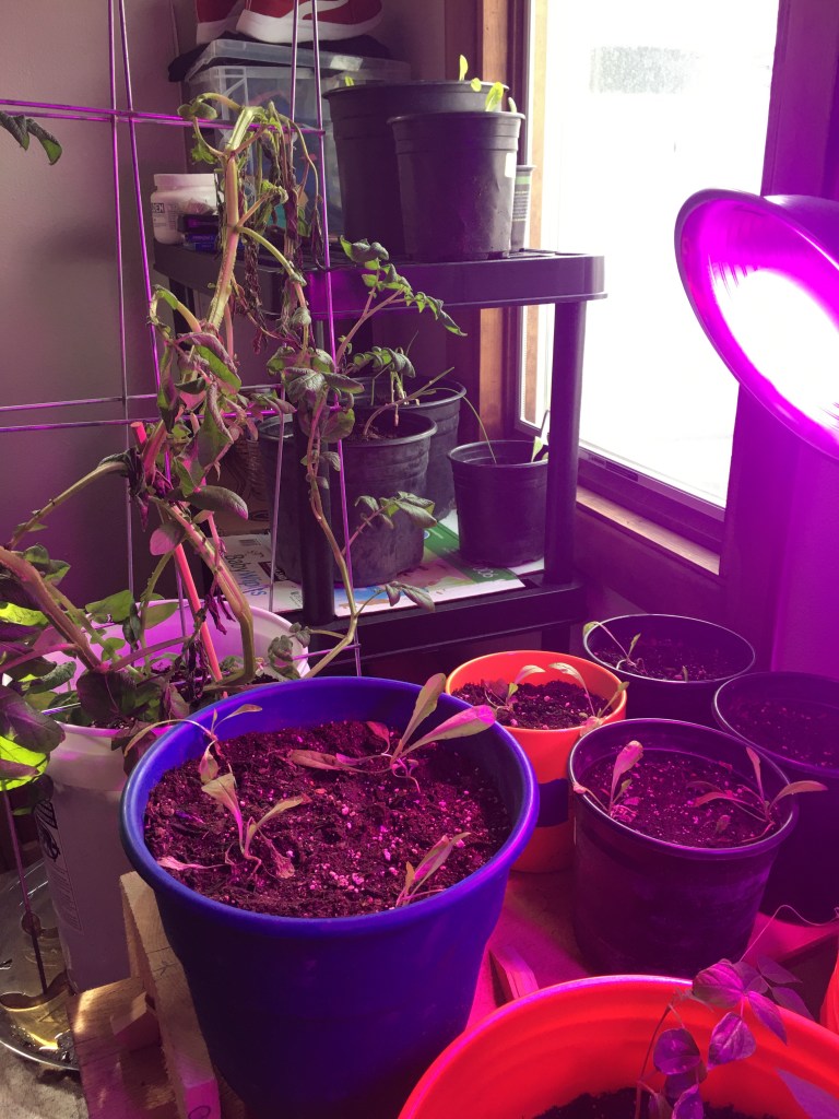 The potato plant is sad but still alive. The lettuce plants are still thriving. After moving pots, I’ve lost about ten more bean plants and about twenty lettuce plants. I don’t think the lettuce plants are too happy with the purple lighting. I think they prefer sunlight.