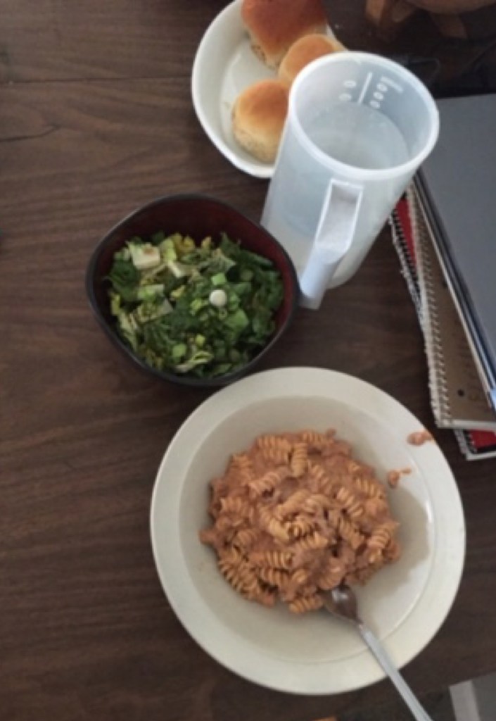 Have to have my healthy food… SALAD!! We also had some leftover Hawaiian rolls. It seems like I added a salad just for the refreshing green color. 😂