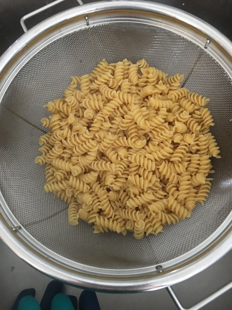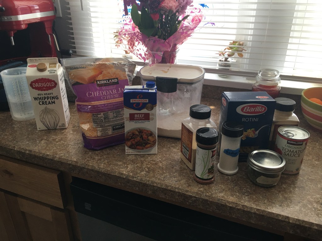 This recipe was not really what I expected. I grabbed the tomato sauce, but it didn’t really register in my mind. I thought this recipe was more of a cheesy Alfredo pasta…