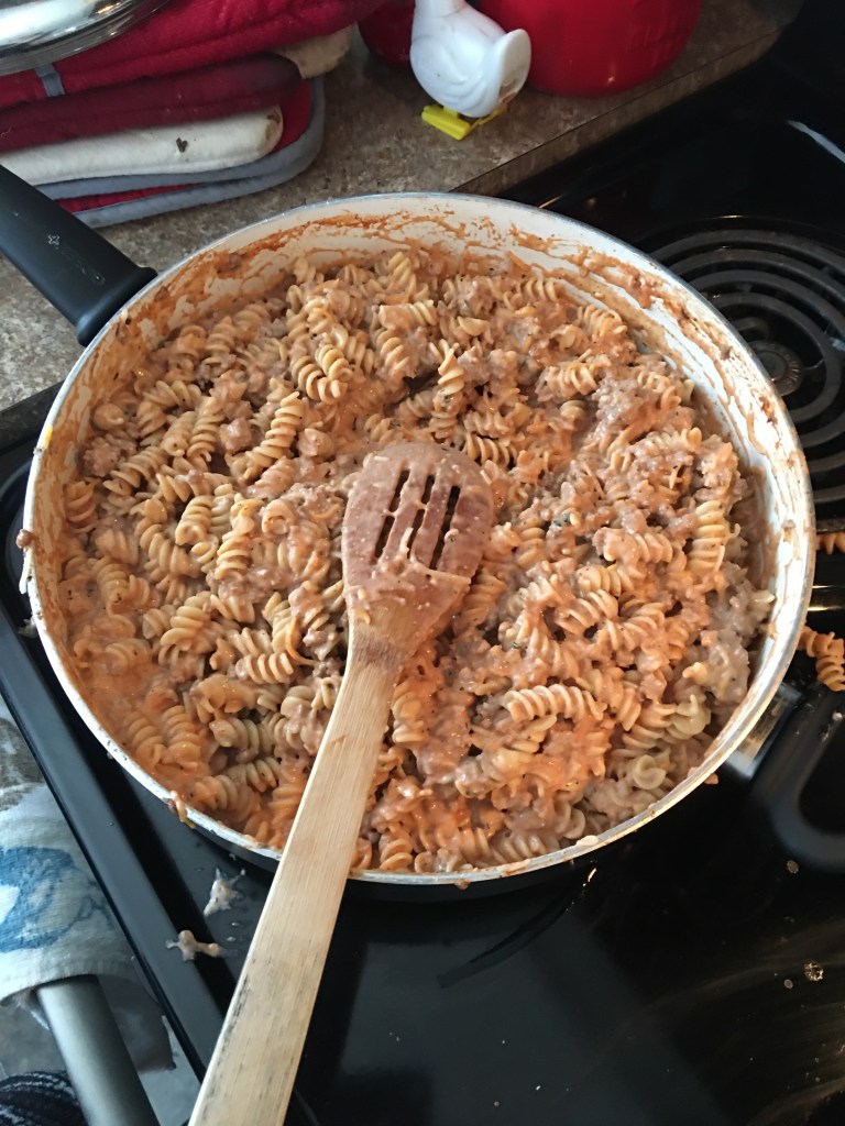 Taste: 8! A solid 8. Mostly because it was not what I expected. So my brain was a little shocked. Whereas the hubby and daughter loved it!! If you try this, there is a distinct tomato taste. Almost like a creamy tomato soup pasta. With meat. Can’t forget the meat!