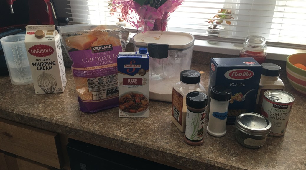 This recipe was not really what I expected. I grabbed the tomato sauce, but it didn’t really register in my mind. I thought this recipe was more of a cheesy Alfredo pasta…