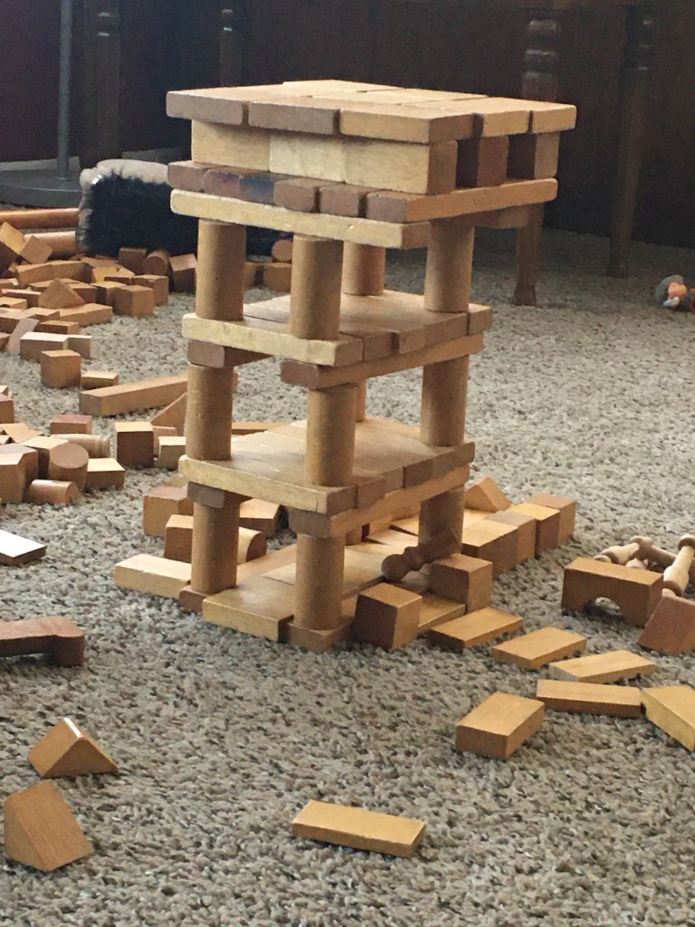 When we dropped Grandma off at the airport today, I don’t think it registered in Elizabeth’s mind that she was saying goodbye to Grandma. Because when we got home she ran excitedly into the living room to the blocks! The blocks have been Grandma and Elizabeth’s domain these past six days.