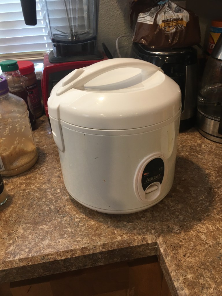 I started the rice when I was defrosting the meat. So it should be done here soon. Right around the perfect time, I might add. 😎
