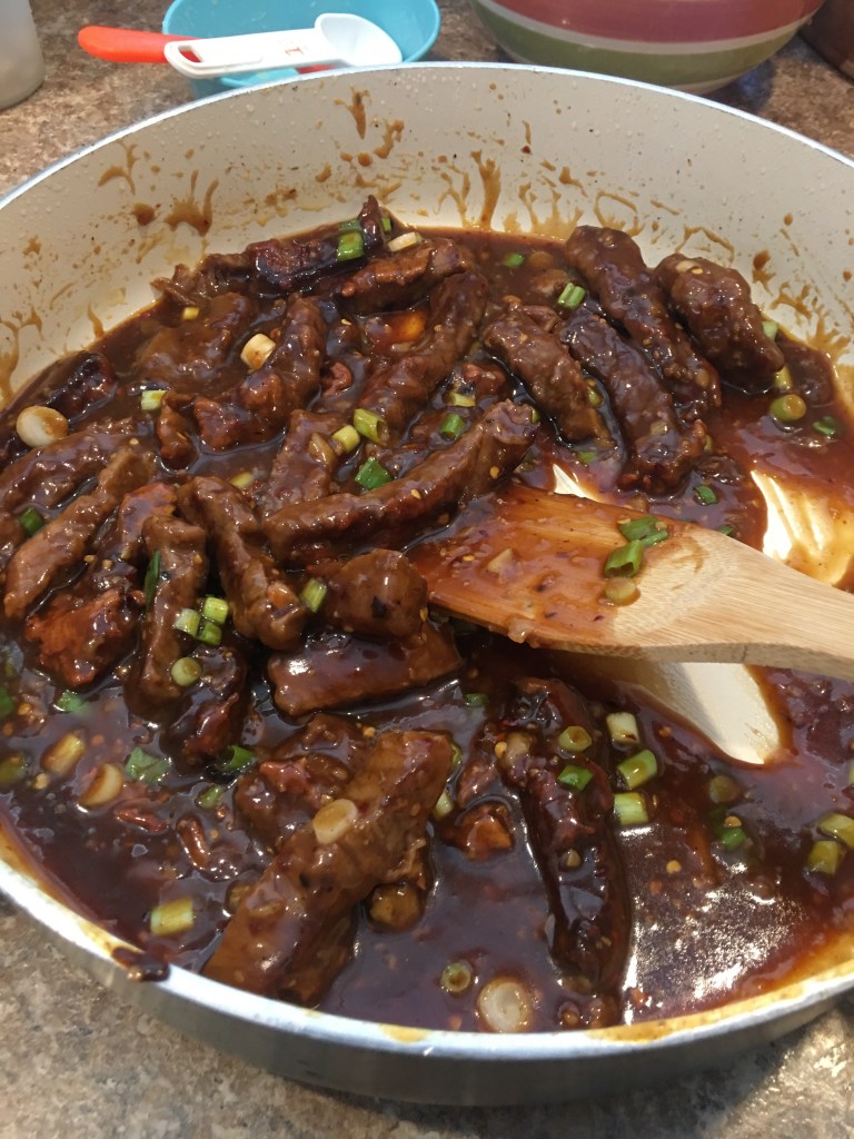 I didn’t realize I was “doing a new recipe” until I was beginning the frying of the beef…so I have no photos of the process beforehand.