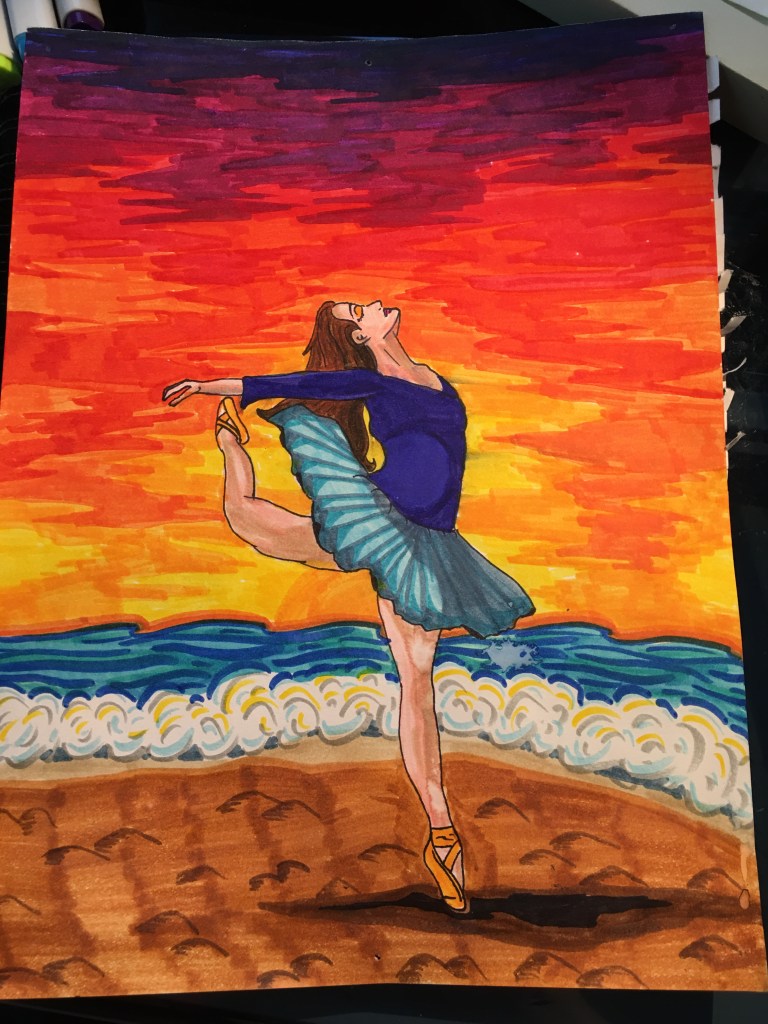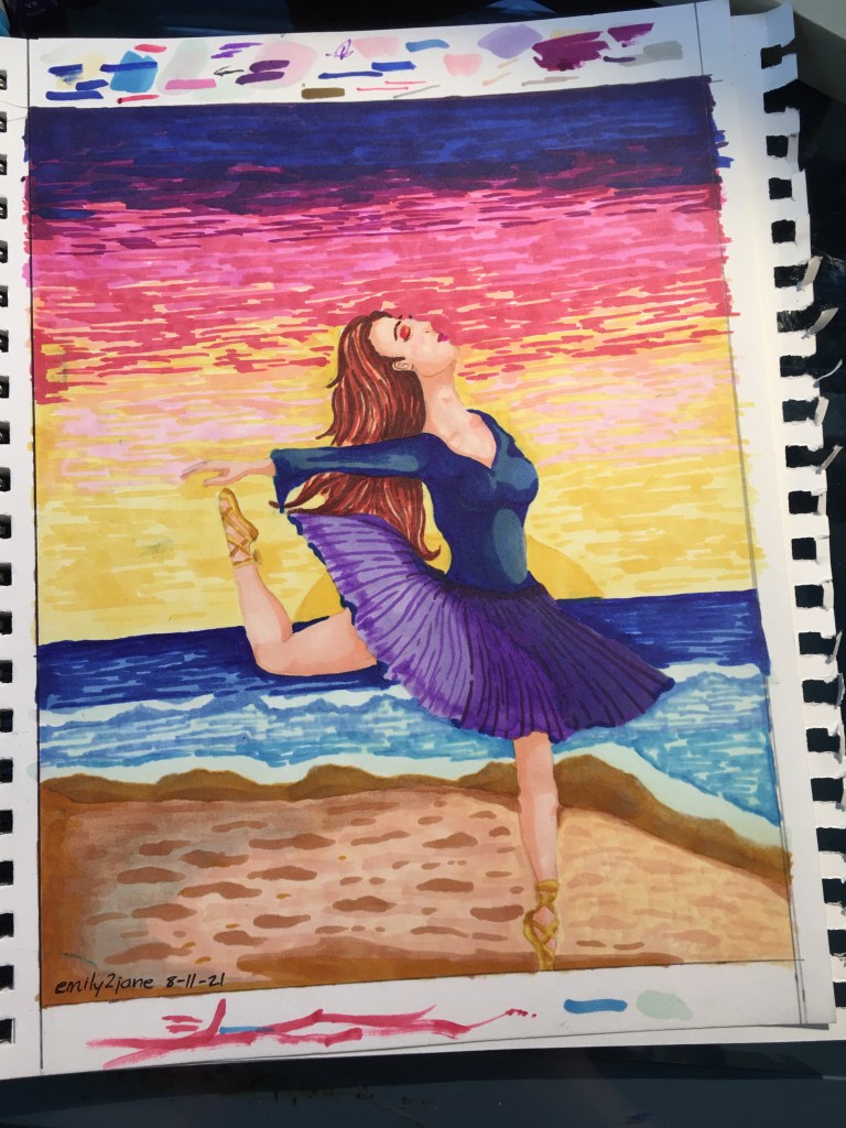 This picture…I believe the stance of the girl was off the internet, but it was just a black line drawing of the girl. I did all the rest from my imagination.