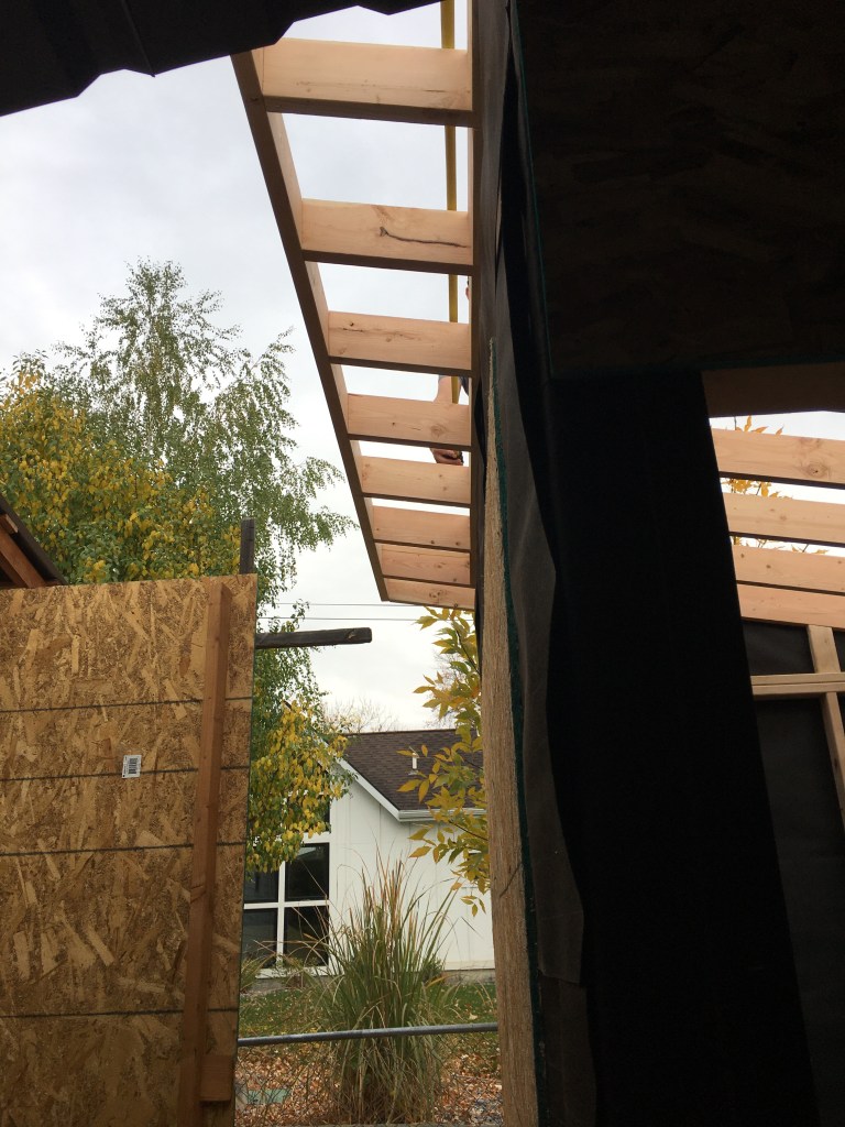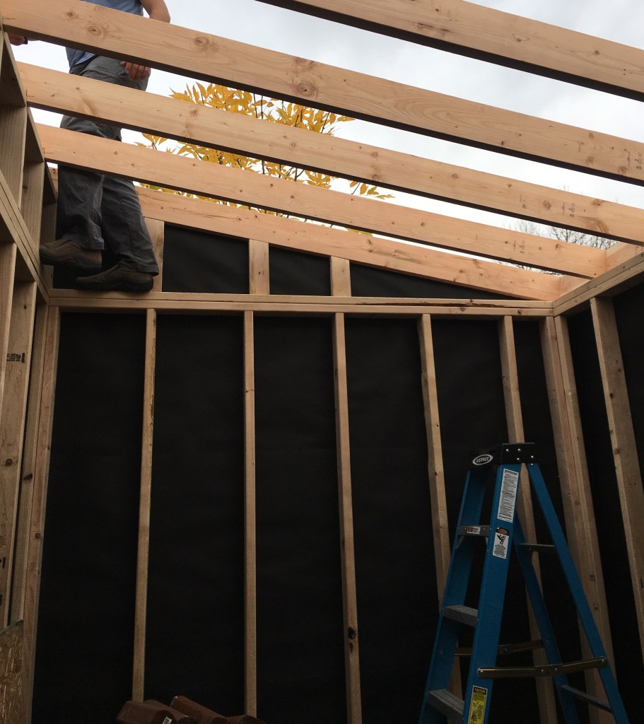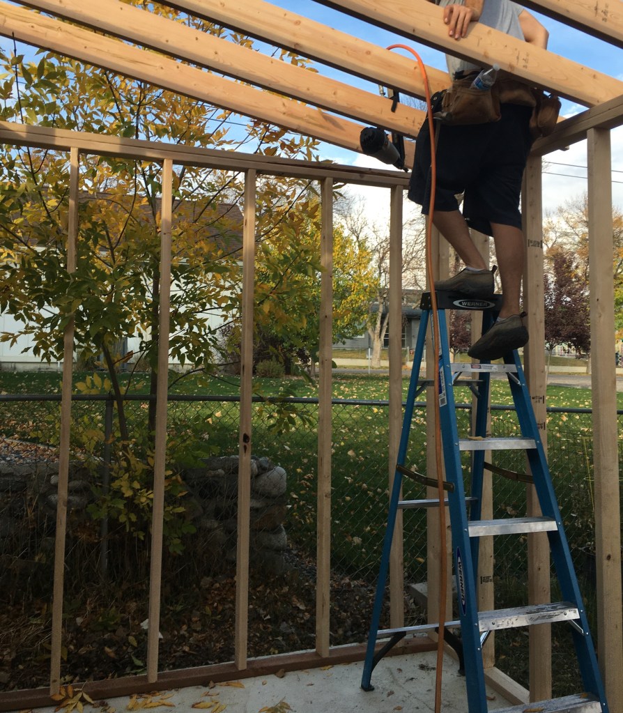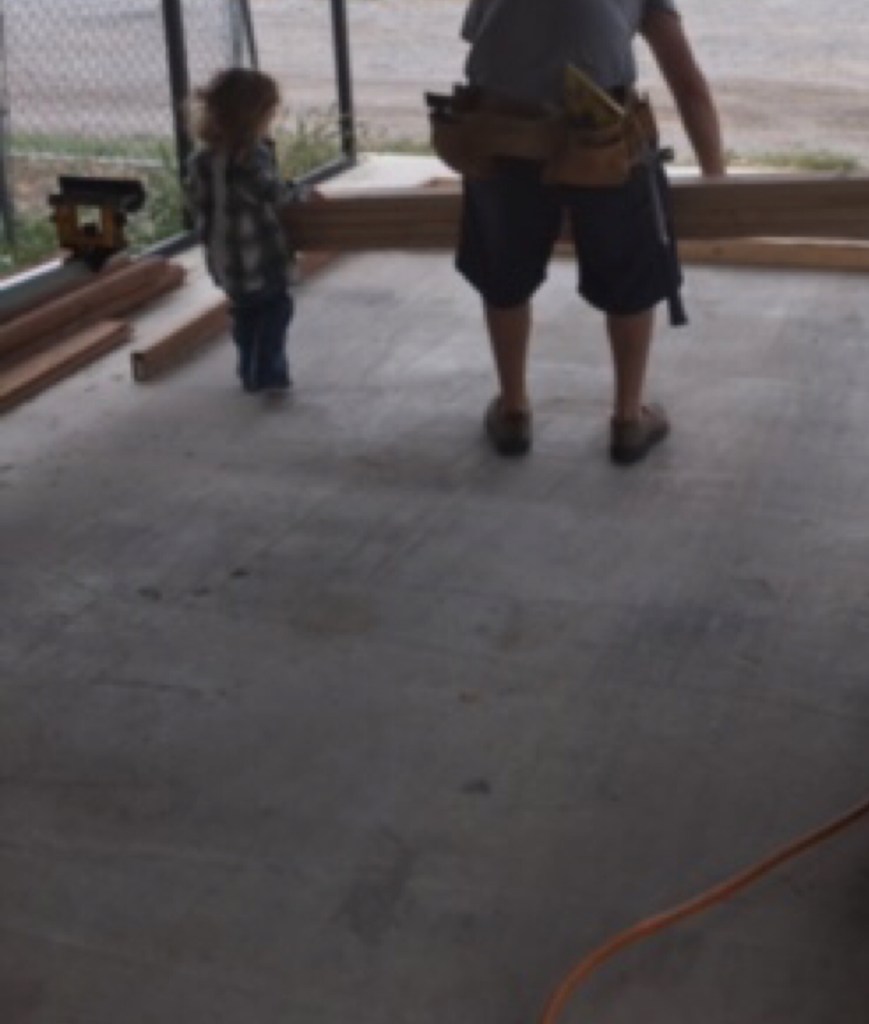 I helped with the rafters. I handed them up to him, and he did all the hard stuff. I was pretty much just a pair of helping hands. Also maybe the mascot.