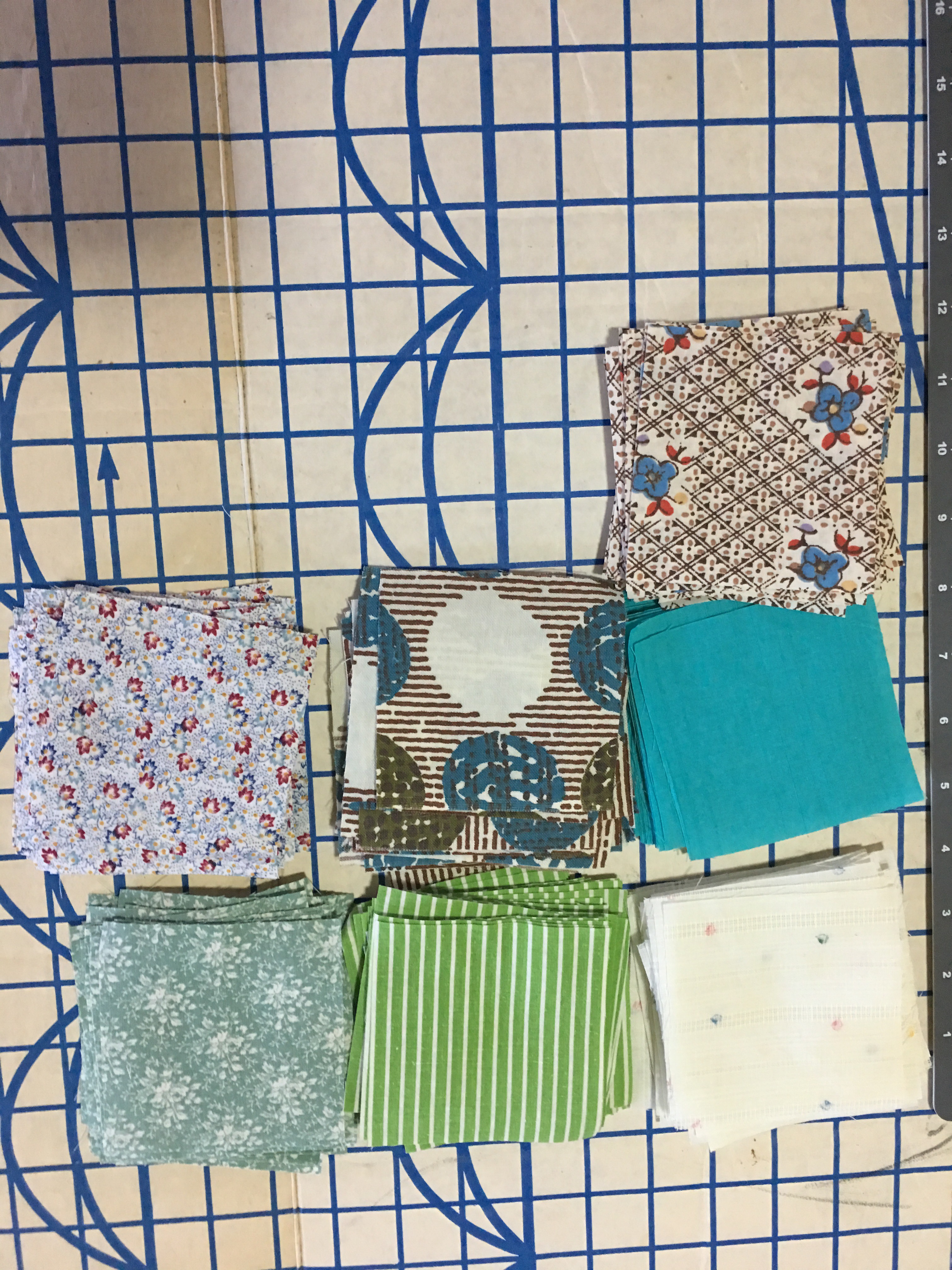 Then the squares began…it’s a long process and to get grandma into the mix I asked her to iron the fabric. She is able to do it and it takes her a bit of time so it makes my job less stressed.
